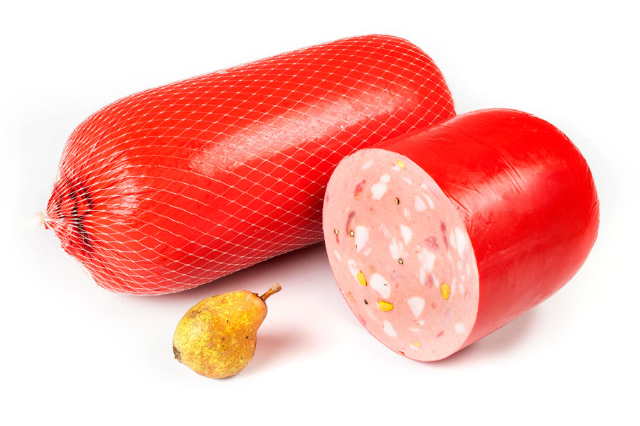 Teža izdelka: cela 6 kg, polovica 3 kg Pakiranje: vakumsko pakiranje Mortadela z olivami
