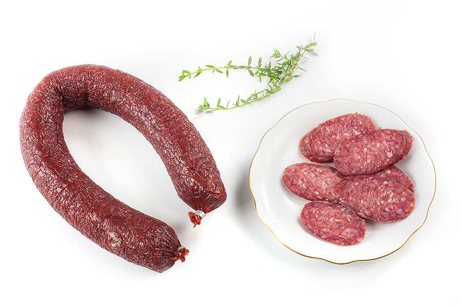 Sestavine: goveje meso, začimbe, aditivi Teža izdelka: cca. 500 g Pakiranje: vakumsko pakiranje