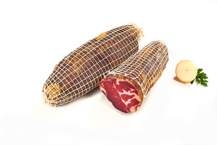 | Mortadela Domača salama Dimljeni zašinek Vipavska panceta Trajna klobasa s tartufi Furlanska salama |